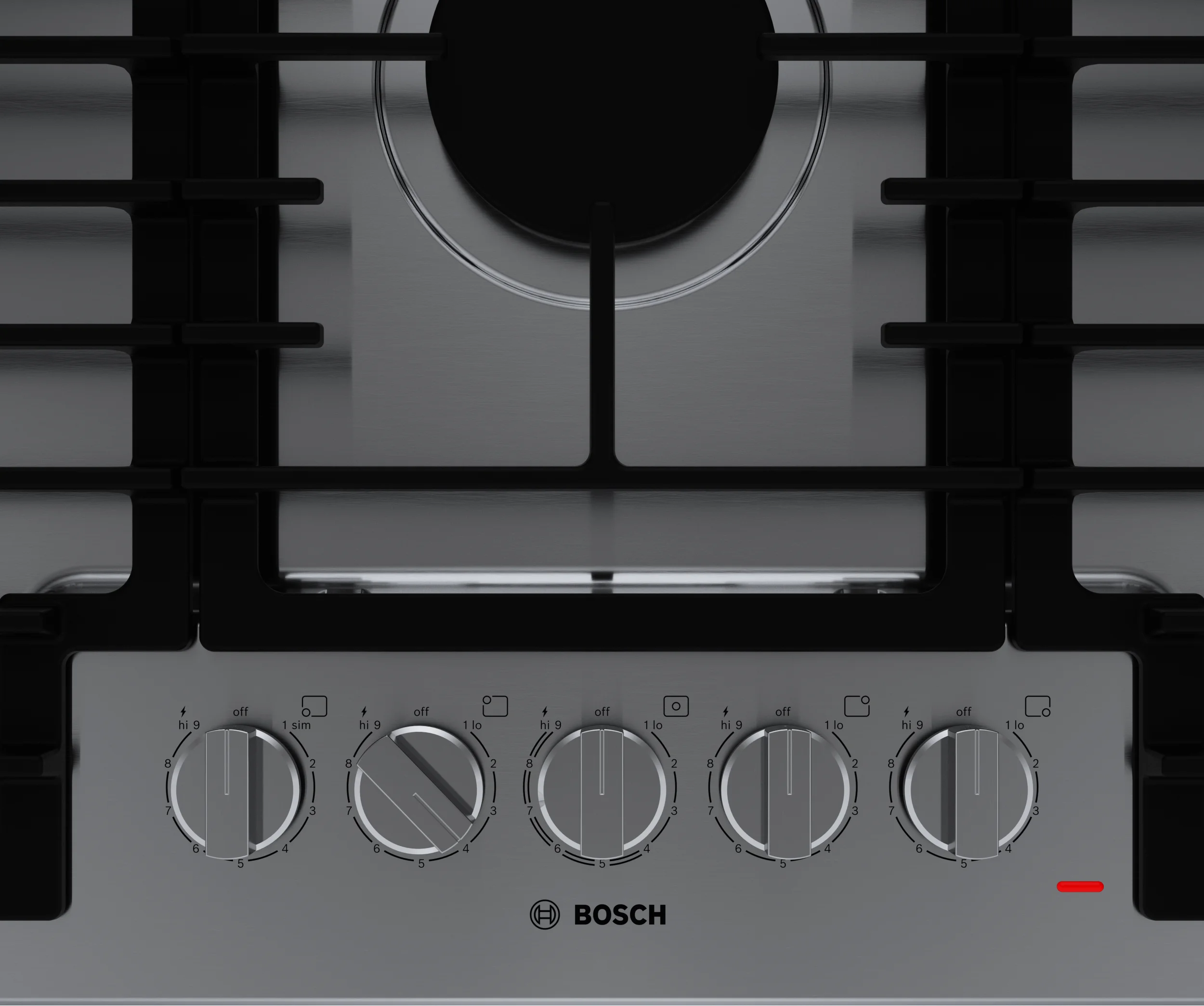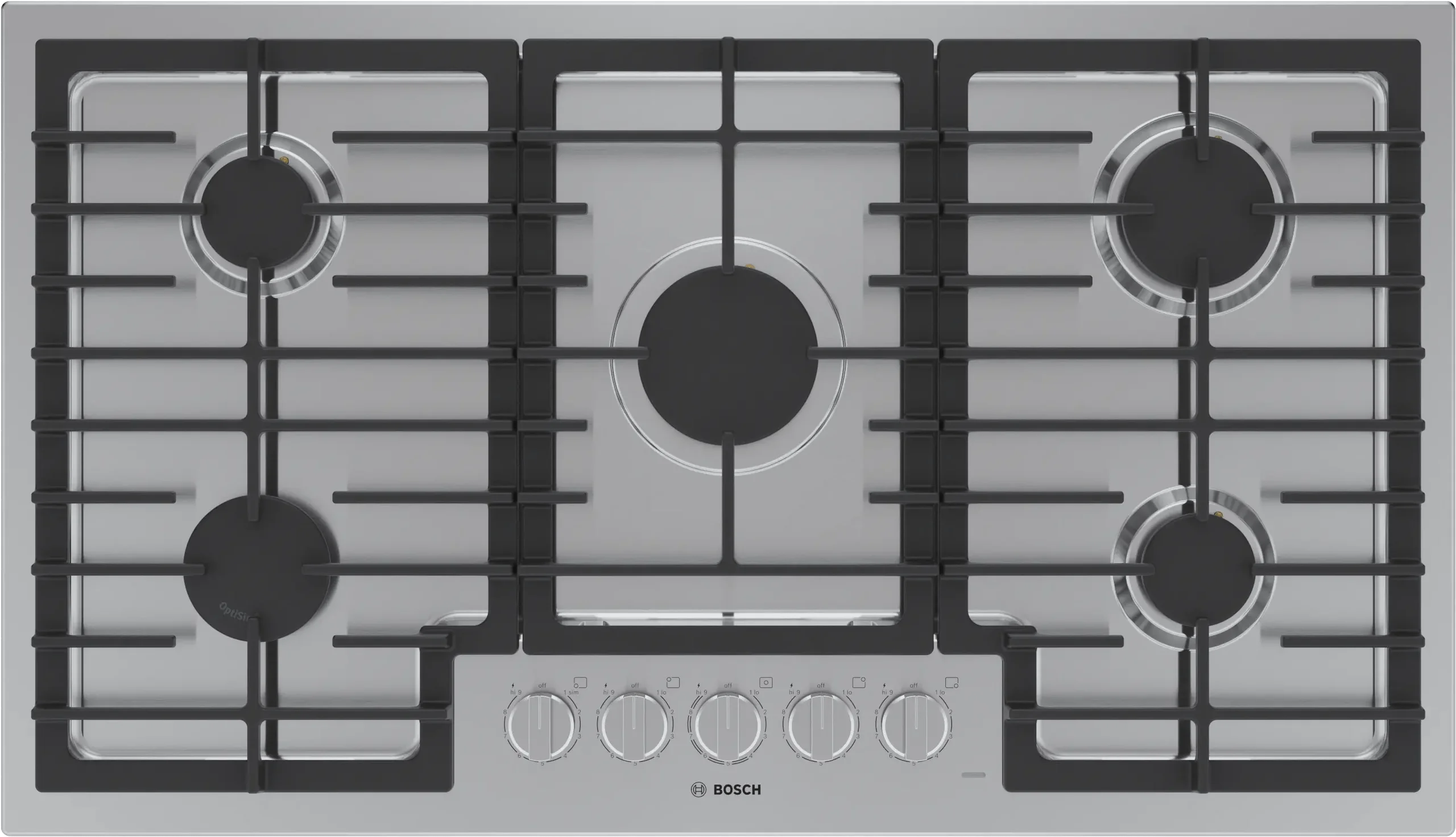 moreThe Bosch 36" 500 Series gas cooktop in stainless steel adds a little more ease and a touch of thrill to cooking. 16K high efficiency burner technology lets you get dinner started more quickly, while the OptiSim burner design provides a better distribution of heat for low simmers. Bold in design and crafted from premium materials, Bosch gas cooktops are designed to withstand the test of time - and cooking.